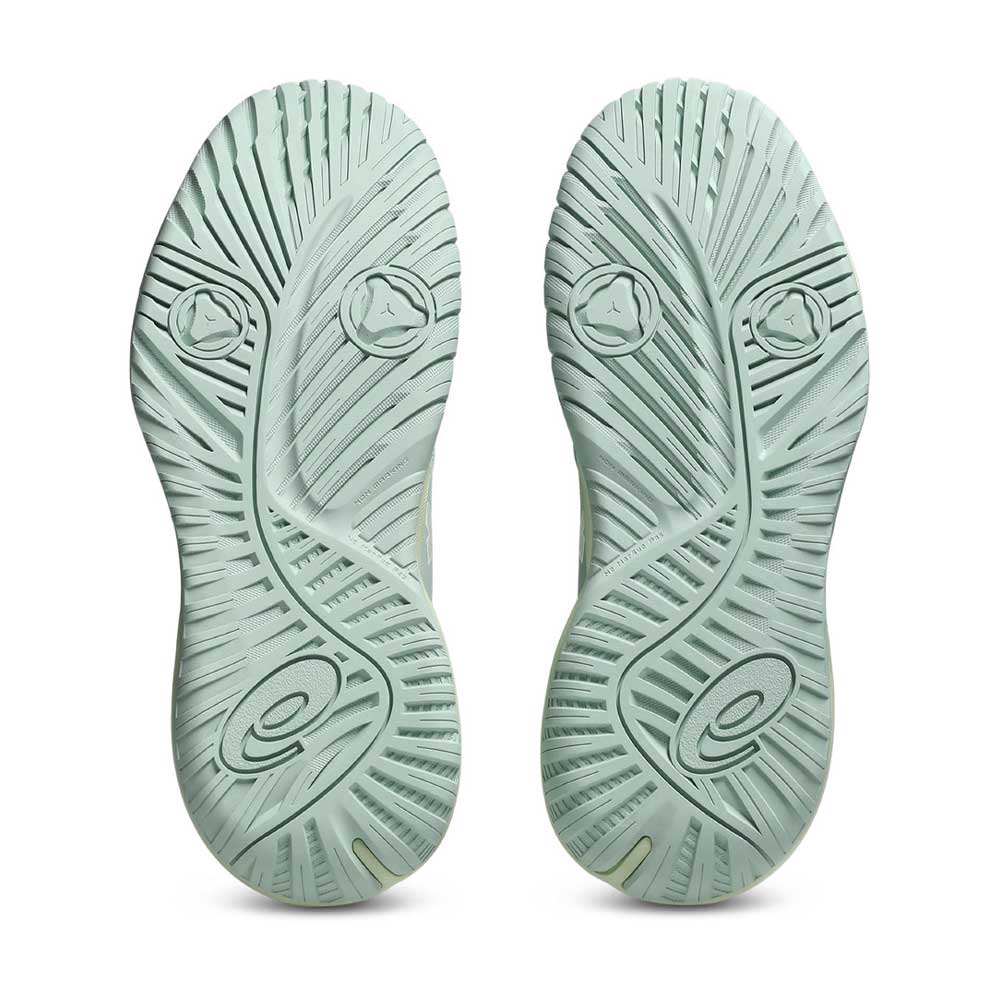 - Suela AHARPLUS™: El caucho de ASICS, de máxima resistencia a la abrasión, se ubica en la zona del talón y es aproximadamente tres veces más duradero que las suelas estándar.